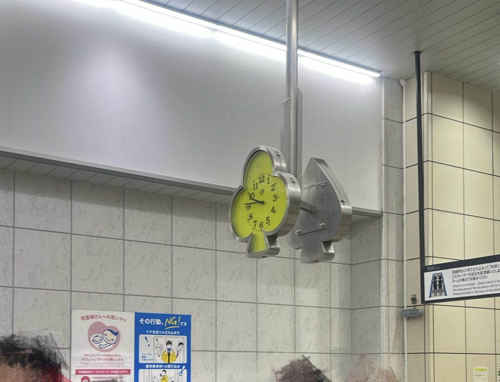 舞浜駅の時計がクローバーやスペードの形!こういう遊び心がワクワクさせますね。